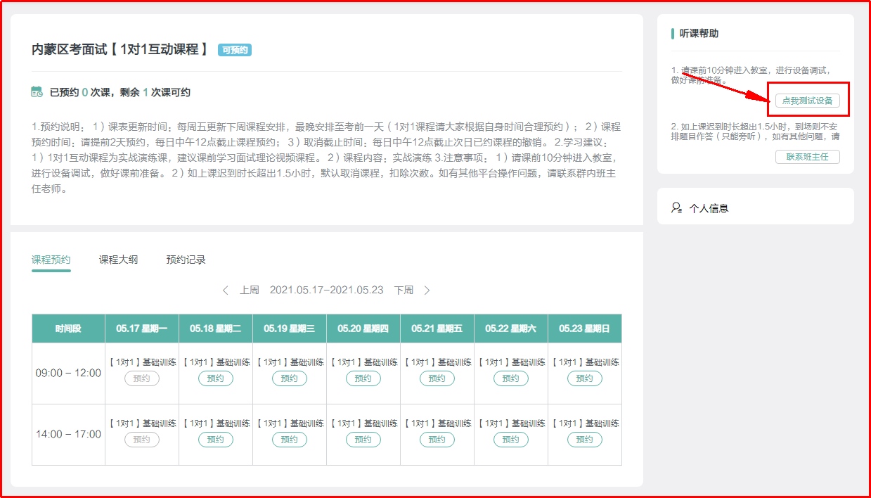 4.設備調(diào)試正常后,即可以使用該設備在當前電腦上參加1對6課程課程。