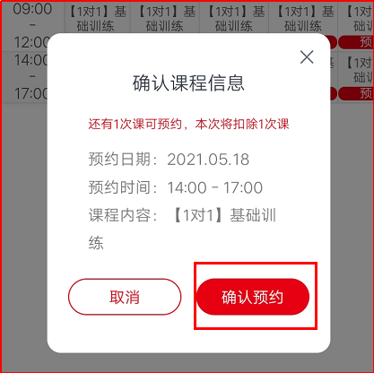 2.選擇自己想約的課,點(diǎn)擊“預(yù)約”,預(yù)約之后再次確認(rèn)