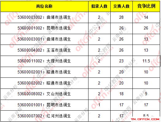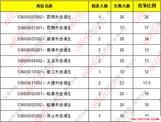 2016云南省選調(diào)生繳費人數(shù)達552人,最熱職位26:1【截止20日10時】