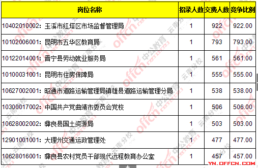報(bào)名通過(guò)繳費(fèi)人數(shù)前十的職位