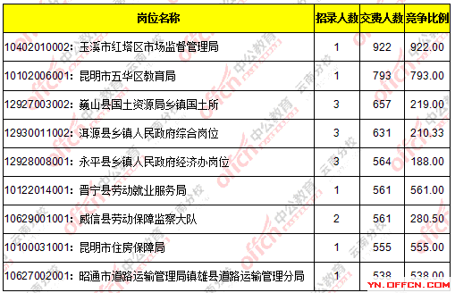 報(bào)名競(jìng)爭(zhēng)最激烈的前十的職位