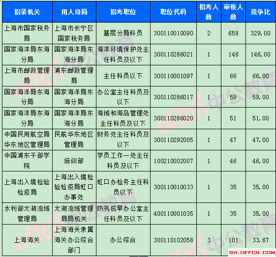[1日16時]2018國考報名數(shù)據(jù):上海6916人報名 最熱競爭比329:1