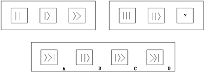 例題:下題給出兩套圖形,左套中的三個(gè)圖形在構(gòu)成或變化上,具有某種特點(diǎn)或遵循某種規(guī)則。要求從下面四個(gè)選項(xiàng)中,選擇一個(gè)取代右套中的“?”,使右套圖形也具有與左套圖形相同或相似的構(gòu)成特點(diǎn)或變化規(guī)則。
