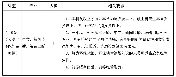 2015湖北省環(huán)境保護(hù)宣傳教育中心招聘1人公告