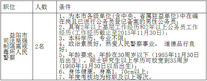 2015湖南益陽市司法局強(qiáng)戒人民警察遴選2人公告