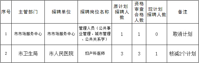 根據(jù)資格審查情況,結(jié)合我市人才引進(jìn)實(shí)際,我們報(bào)請常德市人社局審批同意后,降低了相關(guān)崗位的開考條件。仍有以下崗位達(dá)不到開考比例取消或核減計(jì)劃: