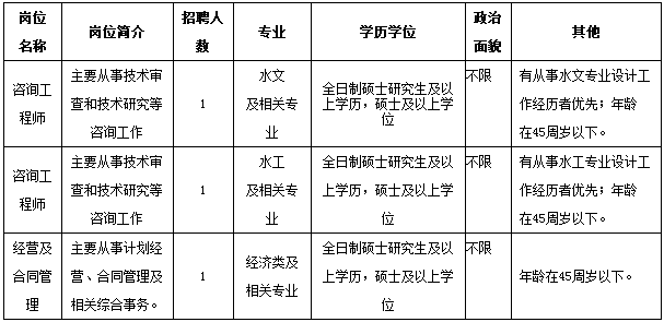 淮河水利委員會(huì)水利水電工程技術(shù)研究中心(網(wǎng)址http://sub.hrc.gov.cn/hwjyzx/)是水利部淮河水利委員會(huì)直屬事業(yè)單位,正處級(jí)建制,國(guó)家發(fā)改委認(rèn)定的甲級(jí)工程咨詢(xún)機(jī)構(gòu),主要從事治淮基建工程項(xiàng)目設(shè)計(jì)審查、評(píng)估及專(zhuān)題專(zhuān)項(xiàng)技術(shù)研究等工程咨詢(xún)工作。根據(jù)工作需要,淮河水利委員會(huì)水利水電工程技術(shù)研究中心2016年面向社會(huì)公開(kāi)招聘3名工作人員。按照《淮委2016年事業(yè)單位公開(kāi)招聘工作實(shí)施方案》要求,現(xiàn)將有關(guān)事項(xiàng)公告如下: