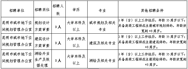 2016云南昆明市城市地下空間規(guī)劃管理辦公室招聘公告【3人】