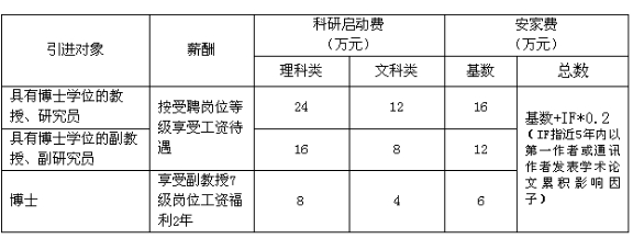 聘用人員為事業(yè)編制,薪酬待遇按國家及政策規(guī)定執(zhí)行,具有博士學(xué)位人員享有如下科研啟動(dòng)費(fèi)和安家費(fèi):