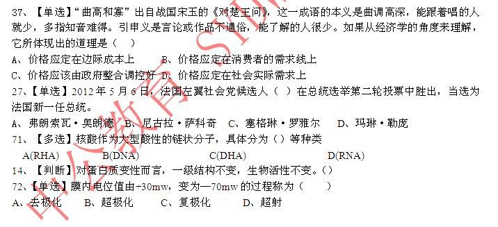 2012年6月2日山東省淄博市市屬事業(yè)單位招考筆試【搶先版】