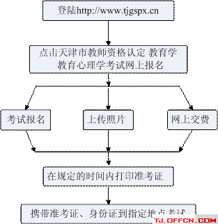 請(qǐng)符合條件的考生須于2013年11月25日-11月29日下午17:00之間登陸天津市高等師資培訓(xùn)中心網(wǎng)站www.tjgspx.cn,點(diǎn)擊《天津市教師資格認(rèn)定教育學(xué)、教育心理學(xué)考試報(bào)名系統(tǒng)》,自行完成網(wǎng)上報(bào)名(考生須認(rèn)真填寫個(gè)人信息,錯(cuò)誤信息可在報(bào)名期限內(nèi)自行修改,逾期不接受補(bǔ)報(bào)和修改信息申請(qǐng))和網(wǎng)上繳費(fèi)(繳費(fèi)時(shí)間可延至11月30日下午17:00前,逾期不再補(bǔ)繳)。考生須于2013年12月17日-12月21日進(jìn)入考試報(bào)名系統(tǒng)下載打印《準(zhǔn)考證》(注:考生須牢記注冊(cè)密碼,否則后果自負(fù))。
