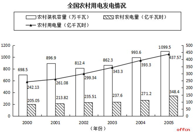 1.2000年至2005年,我國(guó)農(nóng)村發(fā)電量占用電量比重的年份是( )。