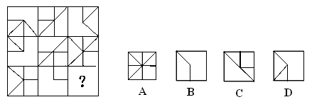 第一種題型:圖形推理。每道題給出一套或兩套圖形,要求報考者認(rèn)真觀察找出圖形排列的規(guī)律,選出符合規(guī)律的一項。
