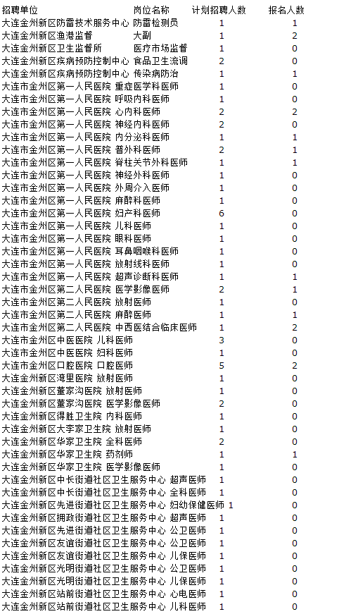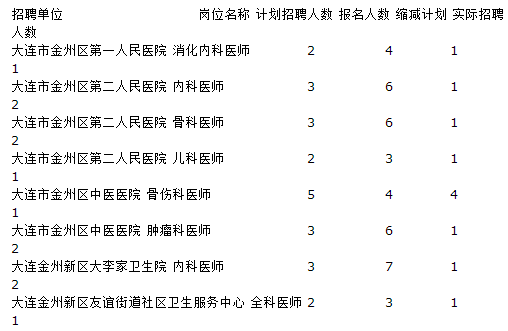 根據(jù)《2015年大連金州新區(qū)部分事業(yè)單位公開(kāi)招聘工作人員公告》規(guī)定和報(bào)名情況,由于此次公開(kāi)招聘中有55個(gè)招聘崗位的有效報(bào)考人數(shù)未達(dá)到3:1比例的規(guī)定,現(xiàn)將取消和縮減崗位情況公告如下: