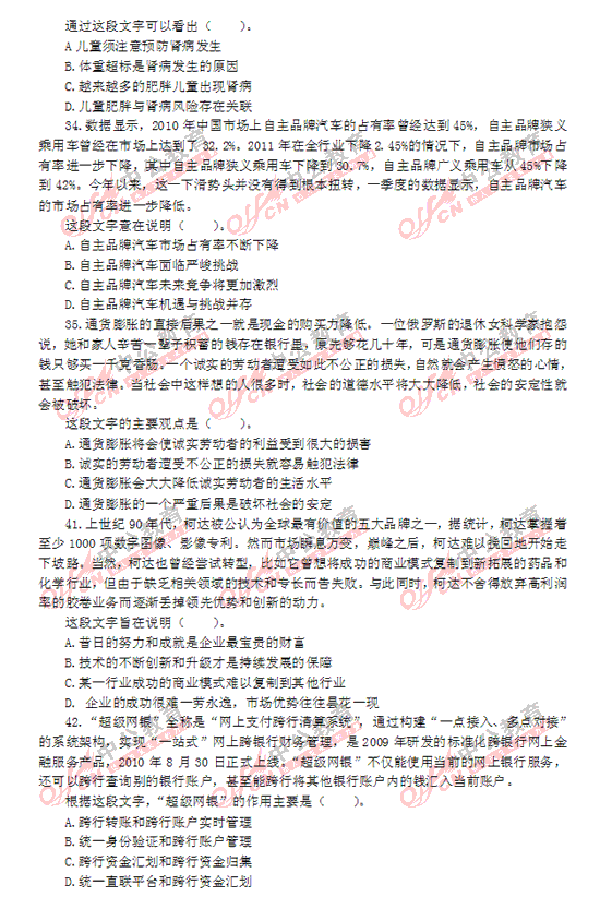 2012年廣東縣以上公務(wù)員考試行測
